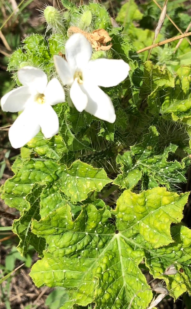 Something prickly ( I’ll update when I know for sure…but for sure it’s prickly…probably don’t want to touch it!) I believe it is bull nettle (cnidoscolus texanus)