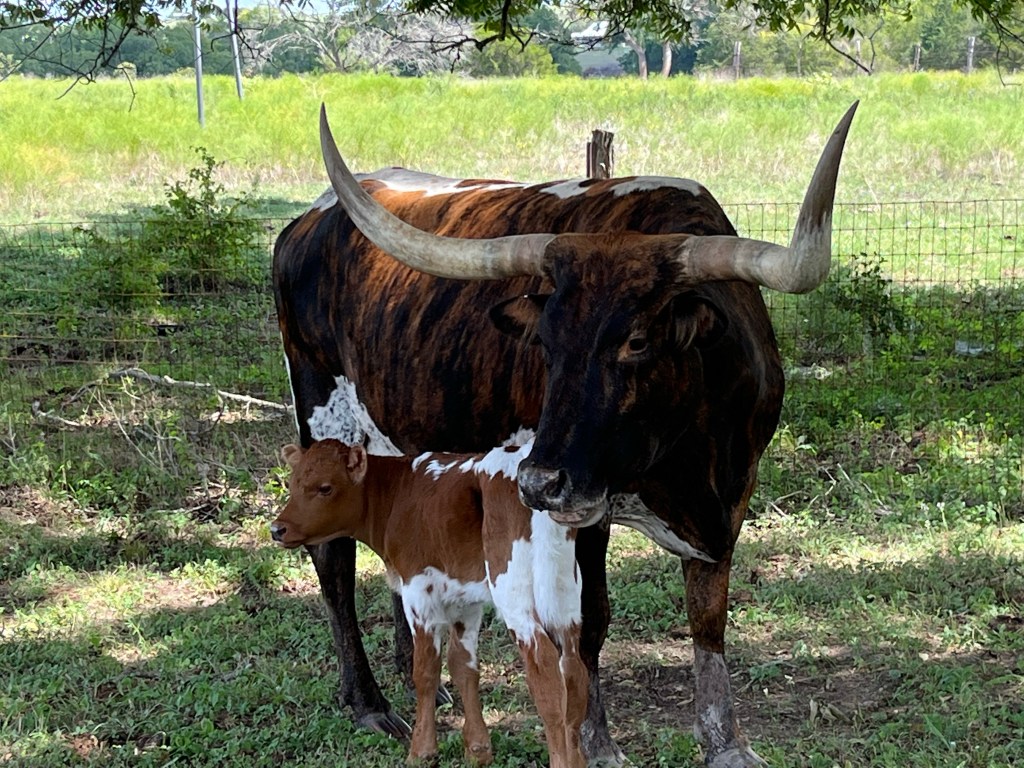 This little bull calf will be the last of Diesel’s offspring. He has both Butler and Wichita Reserve bloodlines. He is staring to get a little brindle streaking on his face.