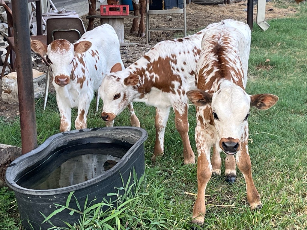 It’s been a very exciting weekend!!! With this heat the most important thing is to be sure these calves are not left out in the blazing sun and that all of the herd has water and shade! Each morning and afternoon involves a head count as well as relocating any calves that have decided to just park themselves in the sun. Sometimes this involves physically picking them up and moving them in to the shade. Most of the time their mamas will be sure they are safe….but sometimes you have to step in and relocate them to safe shade….calves will dehydrate quickly in the hot sun.